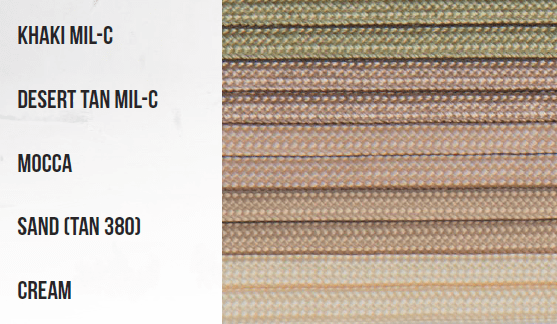 Paracord wordt gebruikt voor platte, ronde, spiraalvormige en vierkante riemen. Voor riemen kan er gekozen worden uit vier identieke of verschillende kleuren. Verder wordt Paracord gebruikt voor het knopen van halsbanden.